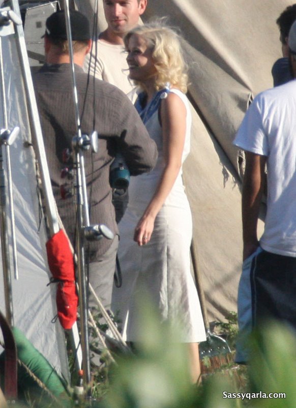 Meanwhile, Robert's beautiful mommy co-star Reese Witherspoon was spotted while chatting with the director. Nice costume Reese!
